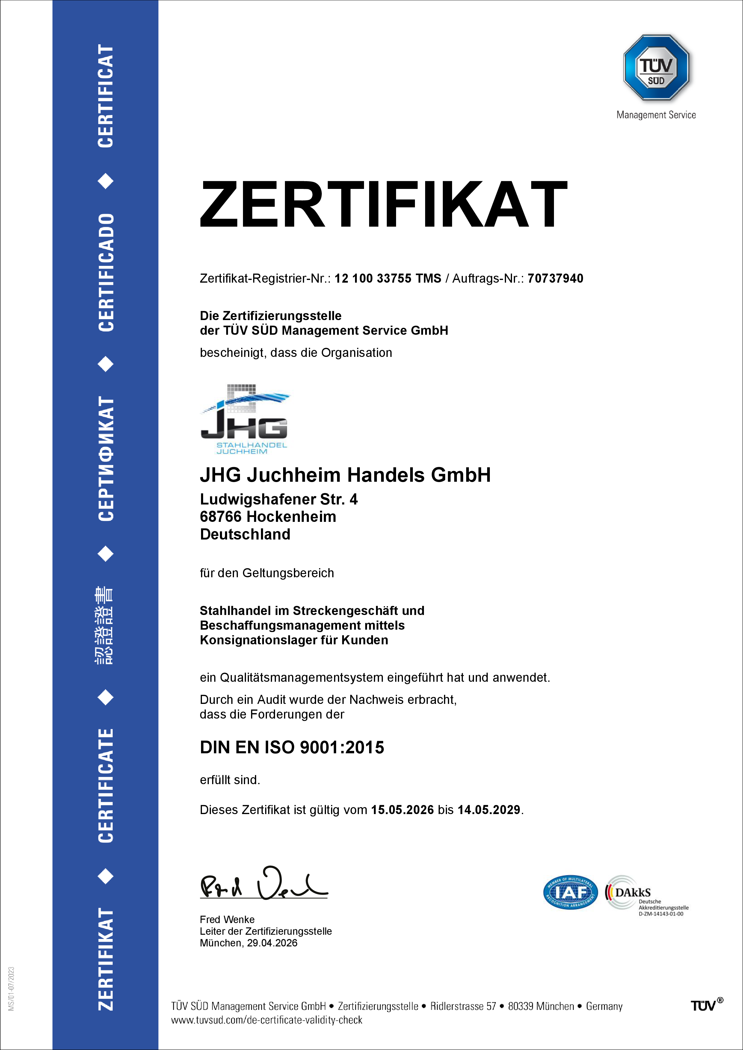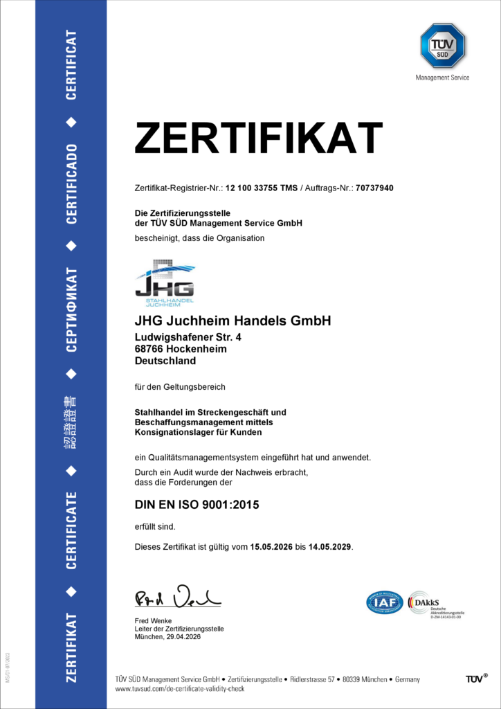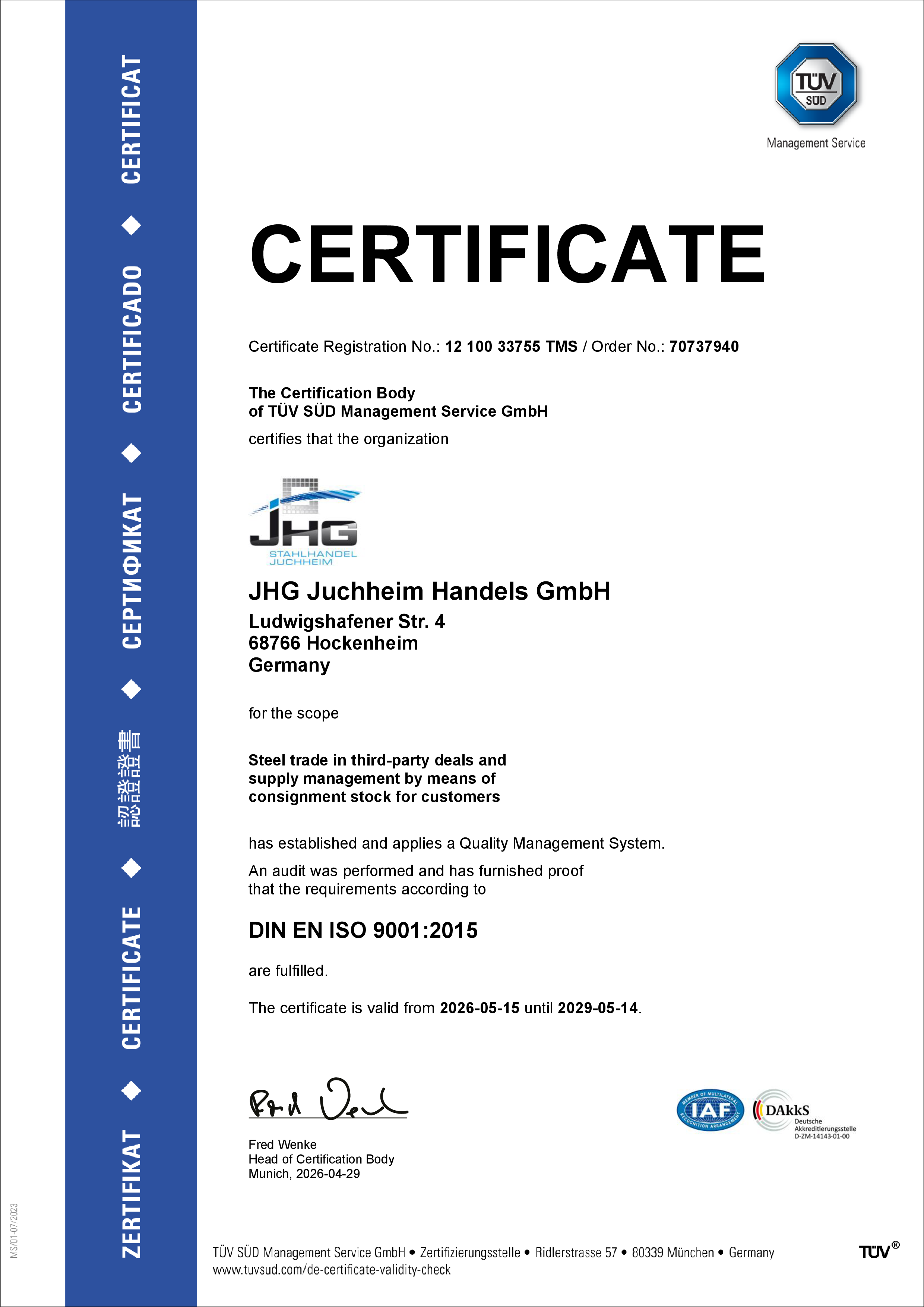 Auf den internationalen Stahlmärkten finden wir für Sie Produzenten, die die von Ihnen benötigten Stahlprodukte in der von Ihnen gewünschten Qualität produzieren. Vertrauen Sie auf geprüfte und zertifizierte Herstellung und Lieferung der Produkte.